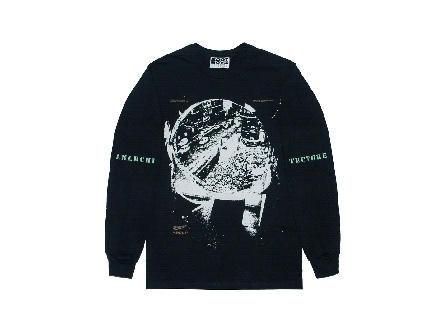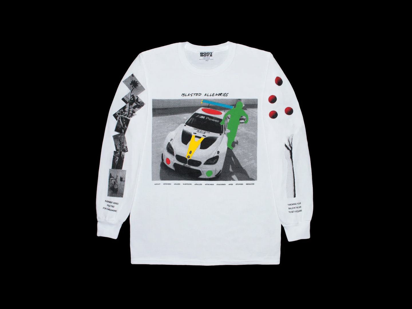 Publishing references reveal one of the project’s most structurally central concerns: the circulation of ideas through editorial media. These graphics draw from magazines, artist publications, and print distribution systems that historically functioned as carriers of discourse across art, politics, and speculative culture. Because Boot Boyz Biz itself operates through zines and research-based releases, this category mirrors the project’s own method of knowledge distribution, positioning garments as extensions of editorial practice rather than standalone visual statements.