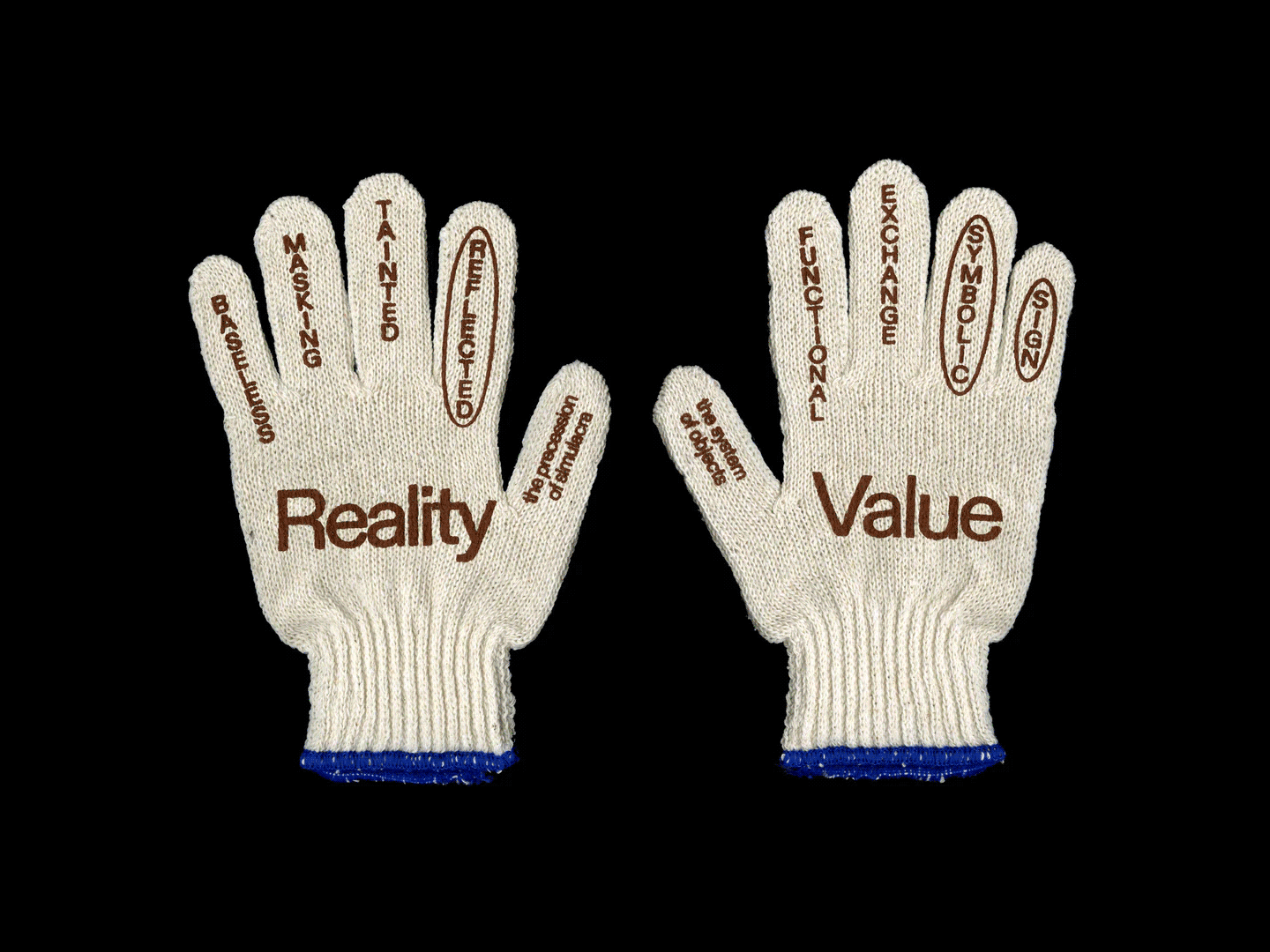 Text-based references to critics, philosophers, and conceptual frameworks appear as stripped graphic citations composed of names, titles, or ideological structures. Presented without explanation, these works resemble library indexing or syllabus notation, reflecting an interest in citation as visual form and in making complex intellectual history publicly visible through minimal intervention. By relocating theoretical discourse into everyday circulation, the graphics shift knowledge from academic space into shared cultural surface while remaining open in interpretation.